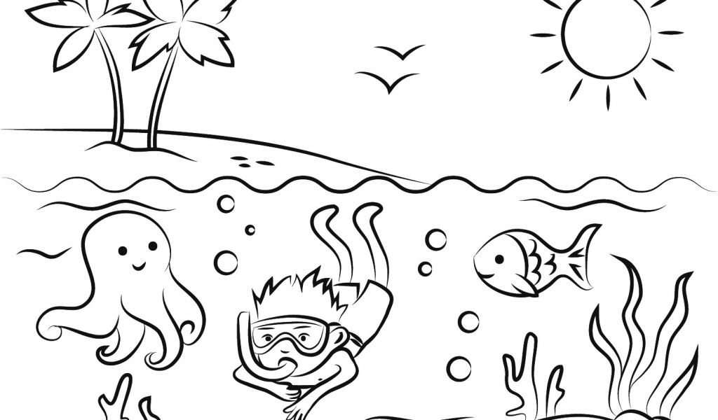 Coloriage à La Plage Coloriage Plage Tropicale Garcon Nage Poisson soleil. Don't forget to rate and Share if you interest with this wallpaper.
