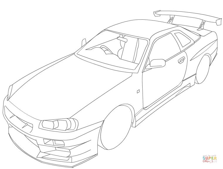This photograph (Coloriage Nissan Gtr Coloring Pages Nissan Gtr Unique Coloriage Nissan Skyline R34) above is labelled with: coloriage de nissan skyline gtr,coloriage imprimer nissan,coloriage nissan juke,coloriage nissan qashqai,coloriage nissan skyline,