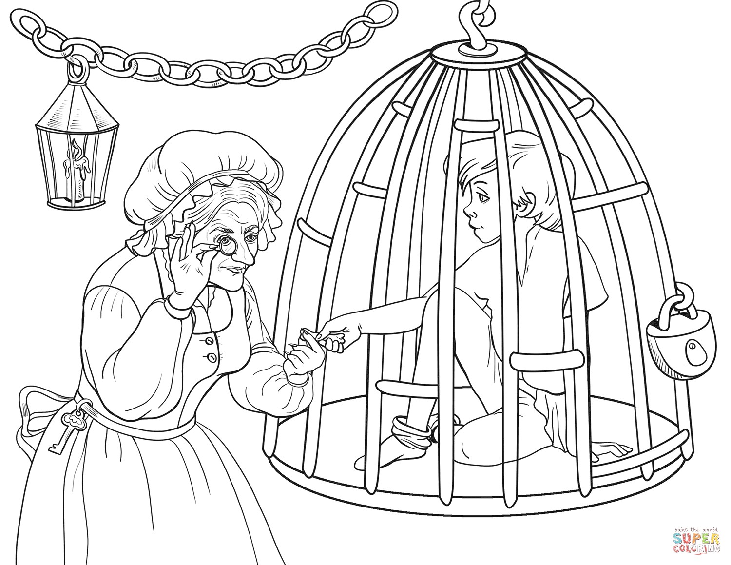 This specific photograph (Coloriage sorcière Hansel Et Gretel the Witch is Checking if Hansel is Enough Fat to Eat Him Coloring) preceding is usually classed with: